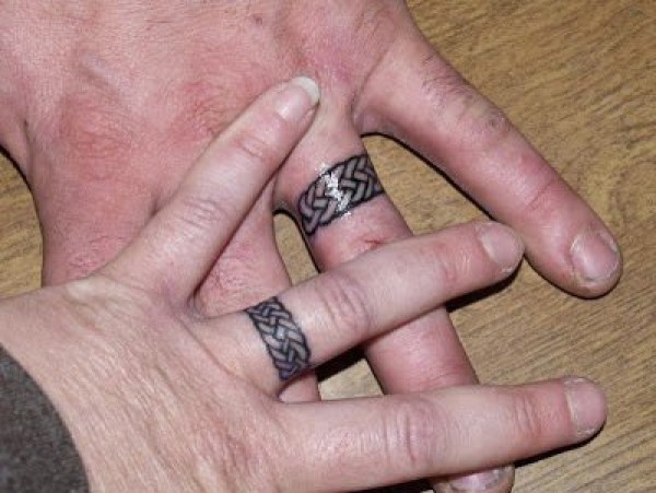 情侣恋人手指关节上的各种指环纹身图案