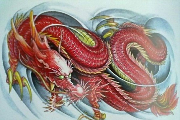 火红色的龙纹身