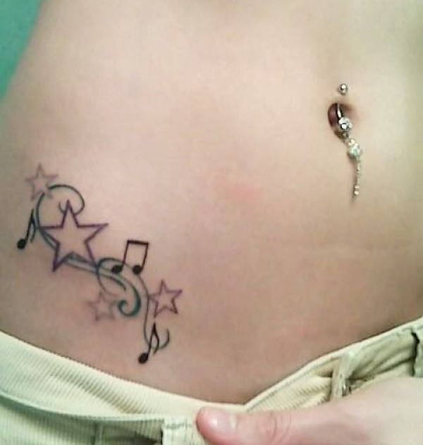 女孩身上美妙的音符纹身图案