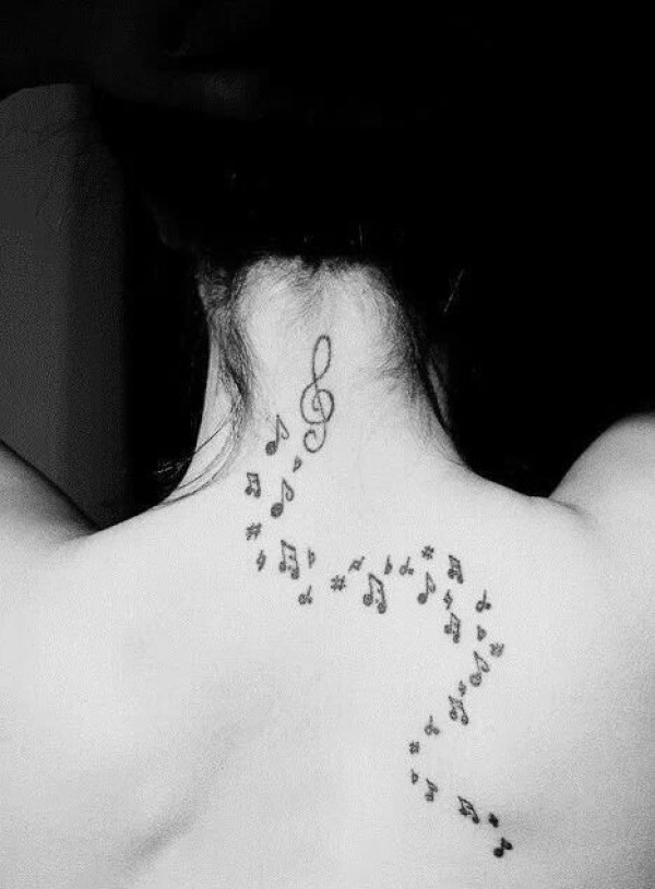 女孩身上美妙的音符纹身图案
