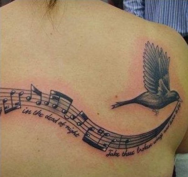 女孩身上美妙的音符纹身图案