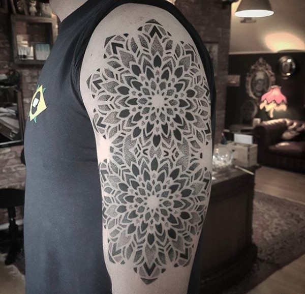 漂亮的点刺纹身黑色曼陀罗图案纹身