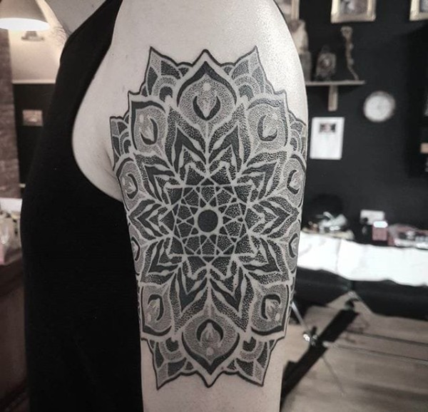 漂亮的点刺纹身黑色曼陀罗图案纹身