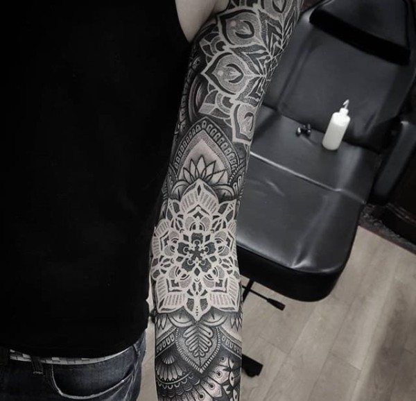 漂亮的点刺纹身黑色曼陀罗图案纹身