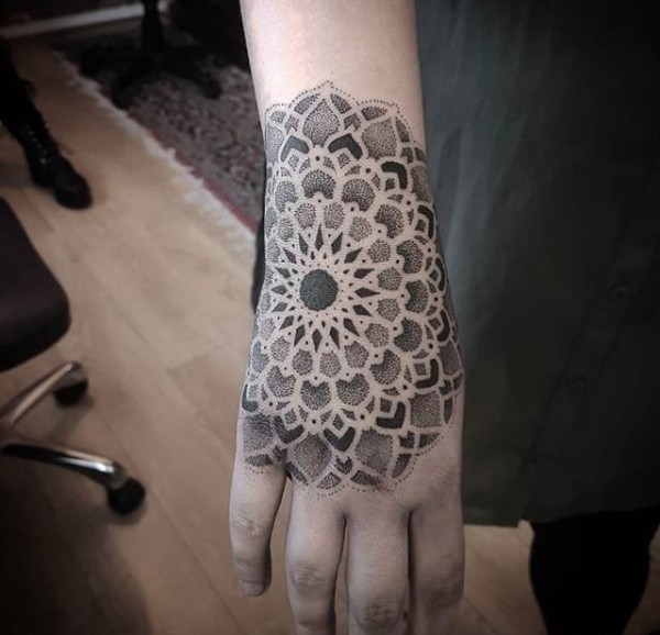 漂亮的点刺纹身黑色曼陀罗图案纹身
