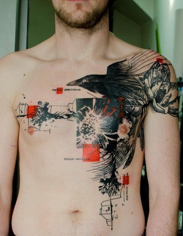 胸前漂亮的水彩风格纹身图案