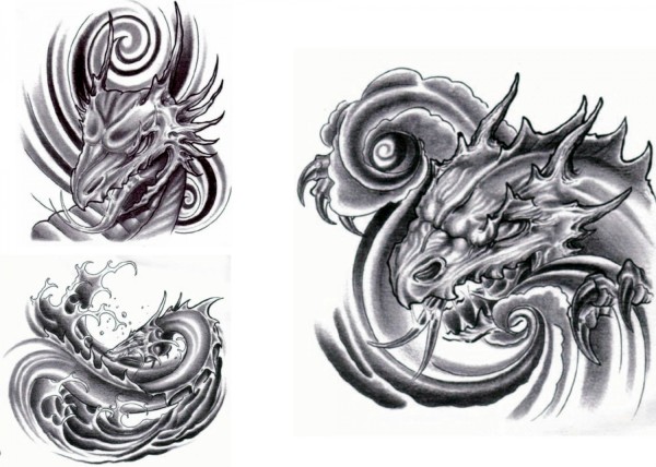 龙纹身手稿_一组老传统黑灰龙手稿纹身图案
