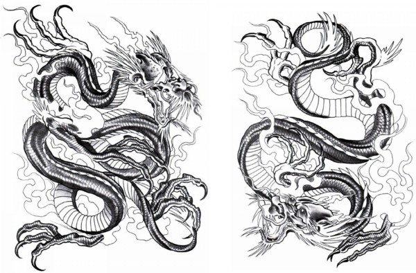 龙纹身手稿_一组老传统黑灰龙手稿纹身图案