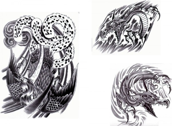 龙纹身手稿_一组老传统黑灰龙手稿纹身图案