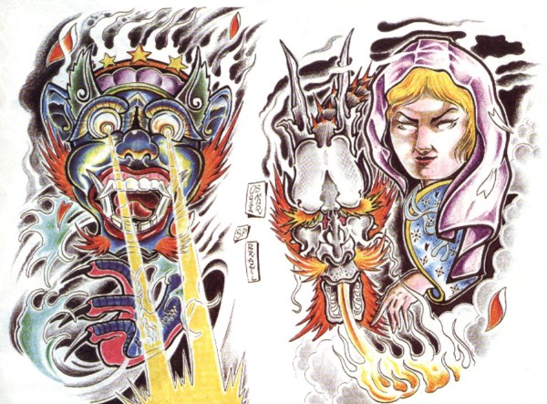 能面万媚纹身手稿_52张日式能剧面具纹身手稿图案素材欣赏
