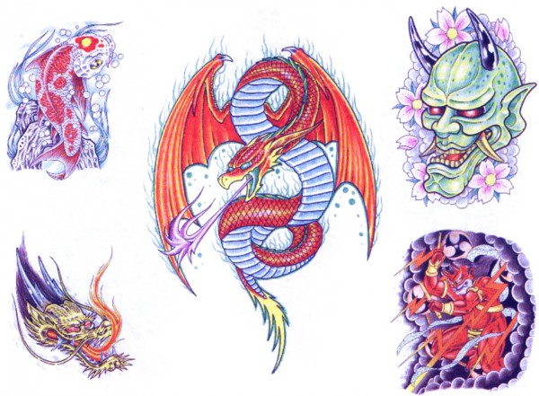 龙纹身手稿_一组老传统黑灰龙手稿纹身图案