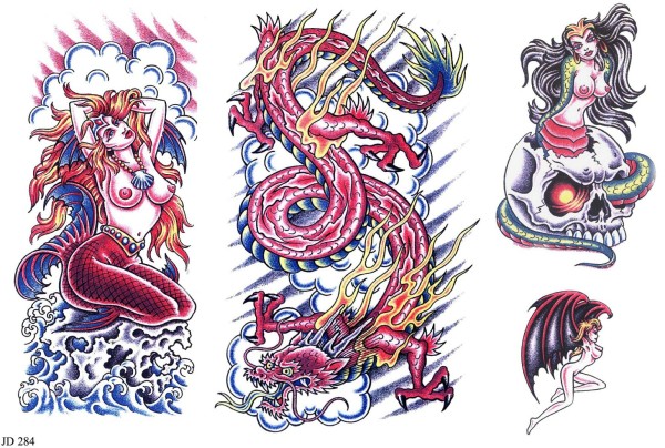 龙纹身手稿_一组老传统黑灰龙手稿纹身图案
