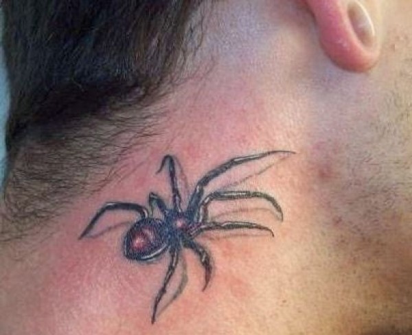 有些恐怖的脖子上的超逼真3D蜘蛛纹身图案