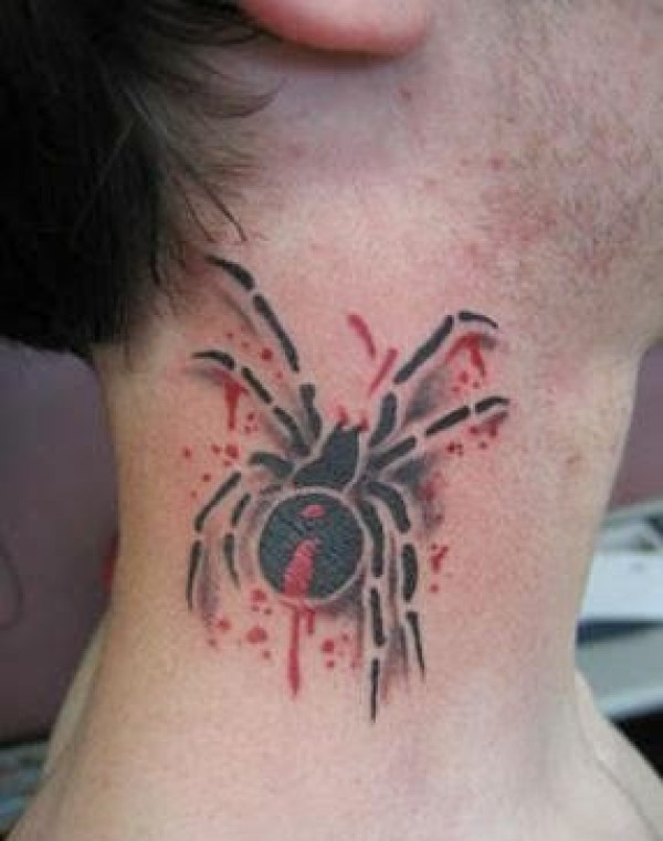 有些恐怖的脖子上的超逼真3D蜘蛛纹身图案