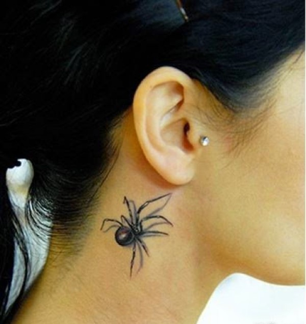 有些恐怖的脖子上的超逼真3D蜘蛛纹身图案