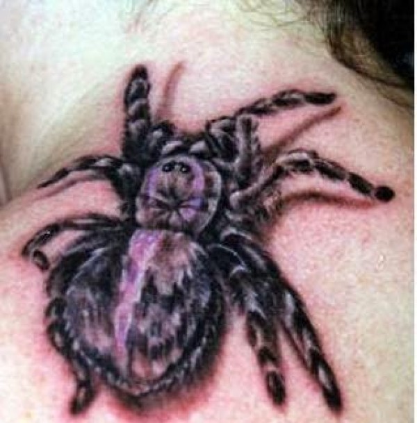 有些恐怖的脖子上的超逼真3D蜘蛛纹身图案