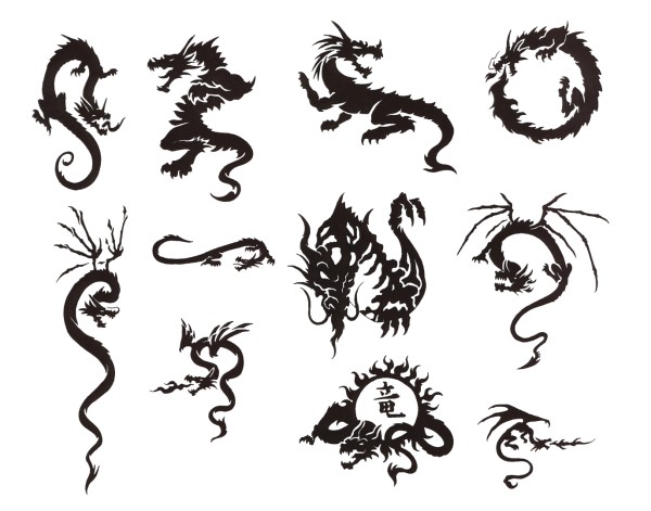 龙纹身手稿_一组老传统黑灰龙手稿纹身图案