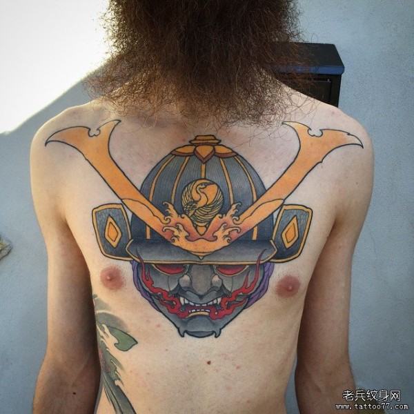 胸口传统鬼武士纹身tattoo图案