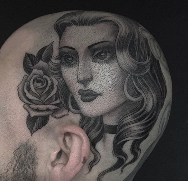 霸气男头部时尚纹身图片_头部纹身图案大全_纹身图吧