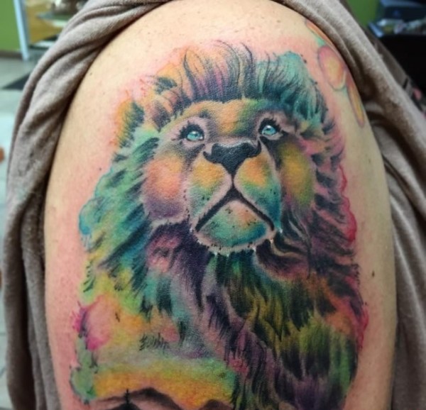 大臂膀上威武的雄狮纹身图案欣赏