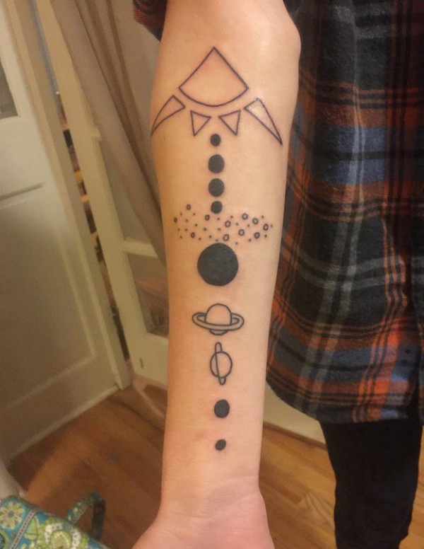 手前臂上的个性几何图形宇宙星球纹身图片