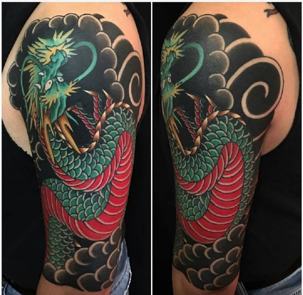 日式手彫刺青作品—半甲龙很感谢客户认可手彫刺青,手彫是日本纹身的手工雕刻技术,时间可以追溯到日本17世纪的江户时代。19世纪,手彫技术被日本黑帮挪用,被用作入会仪式,象征着从此就是江湖中人。在日式传统