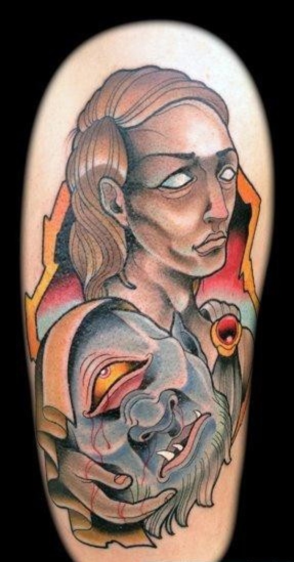 school花臂纹身--一组漂亮的school风格的花臂纹身图案作品