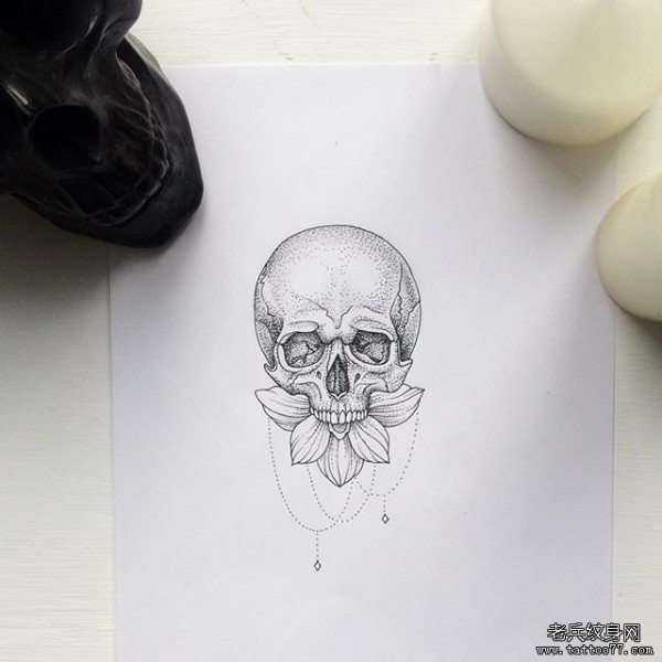 欧美风骷髅花蕊点刺挂饰纹身图案手稿
