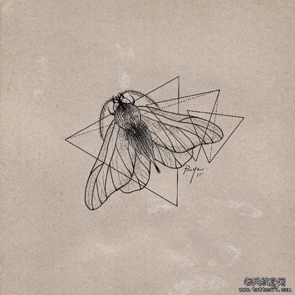 欧美飞蛾几何线条纹身图案手稿