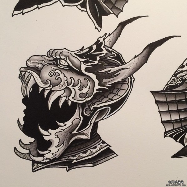 龙纹身手稿_一组老传统黑灰龙手稿纹身图案