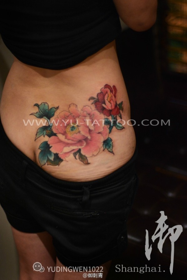 分享一款腰部时尚性感的蝶恋花纹身图案_腰部纹身图案大全_纹身图吧