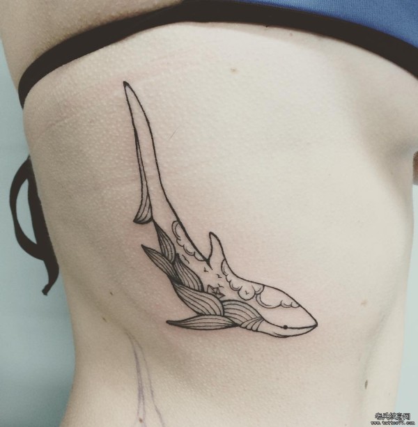 女生侧腰线条简单小清新鲨鱼纹身图案