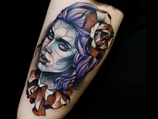 逼真的超现实主义花纹身图案来自纹身师莫拉莱斯