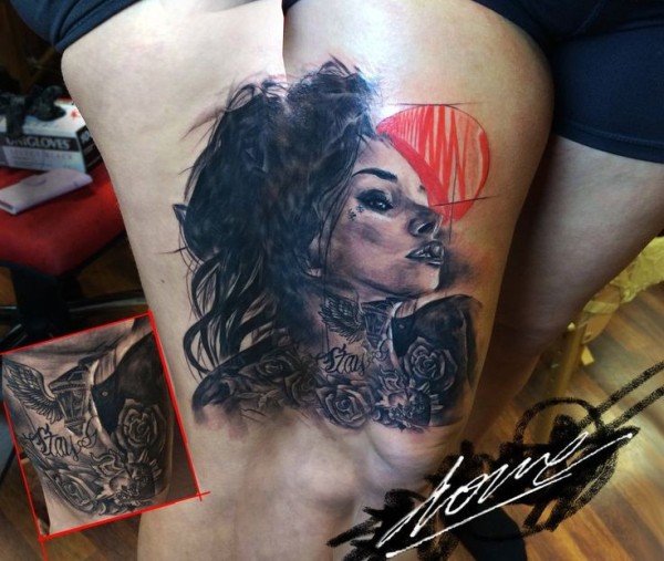 逼真的超现实主义花纹身图案来自纹身师莫拉莱斯
