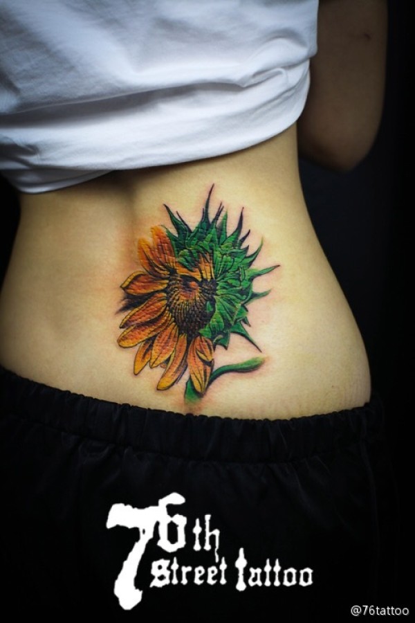 草图感向日葵纹身图案_植物纹身图案大全_纹身图吧