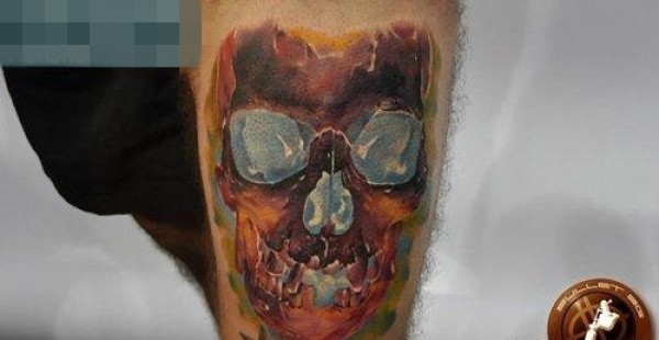 腿部经典帅气的欧美彩色骷髅纹身图案
