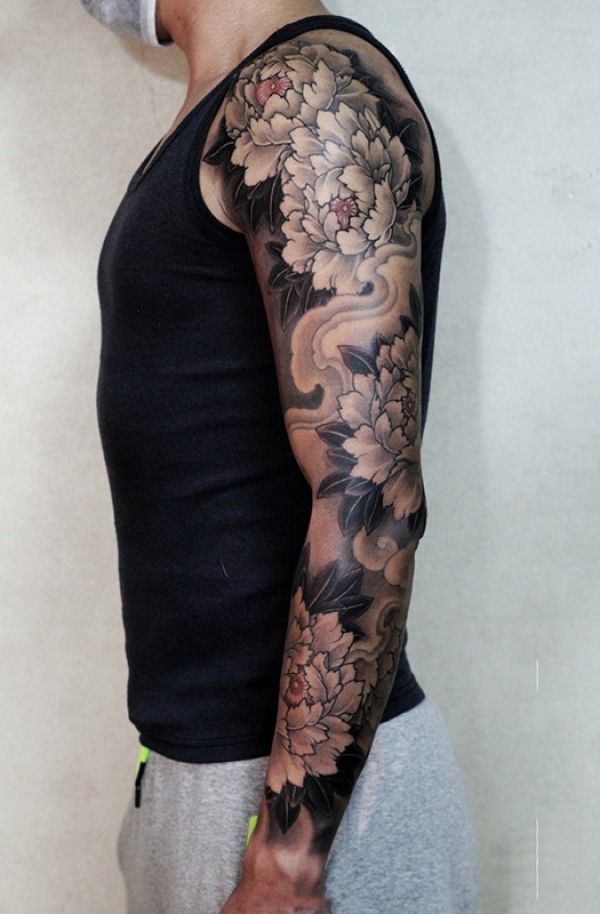 欧美玫瑰纹身 男生手臂上花朵纹身图片