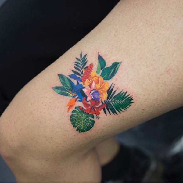 清新花朵腿部纹身图案图片_植物纹身图案大全_纹身图吧