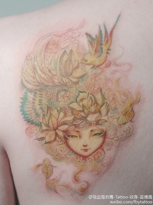 性感女生满背创意文身作品