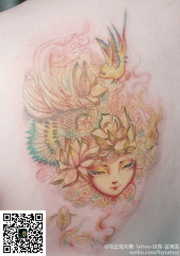 性感女生满背创意文身作品