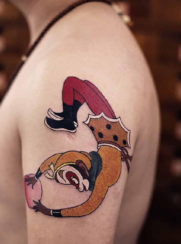 复古卡通红唇美女手臂纹身_卡通纹身图案大全_纹身图吧