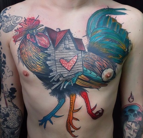 公鸡纹身图案现代纹身风格_动物纹身图案大全_纹身图吧