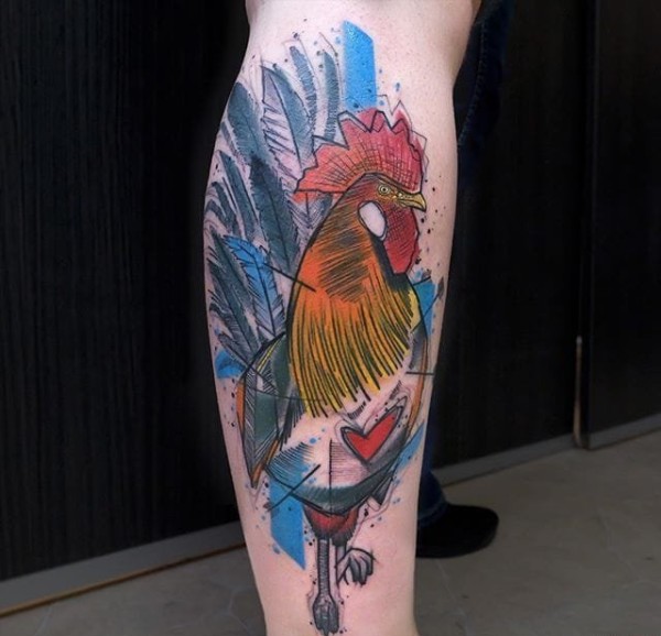 公鸡纹身图案现代纹身风格_动物纹身图案大全_纹身图吧