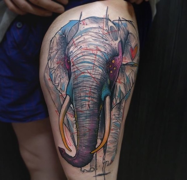彩色简单个性线条纹身动物肖像纹身素描技巧图案
