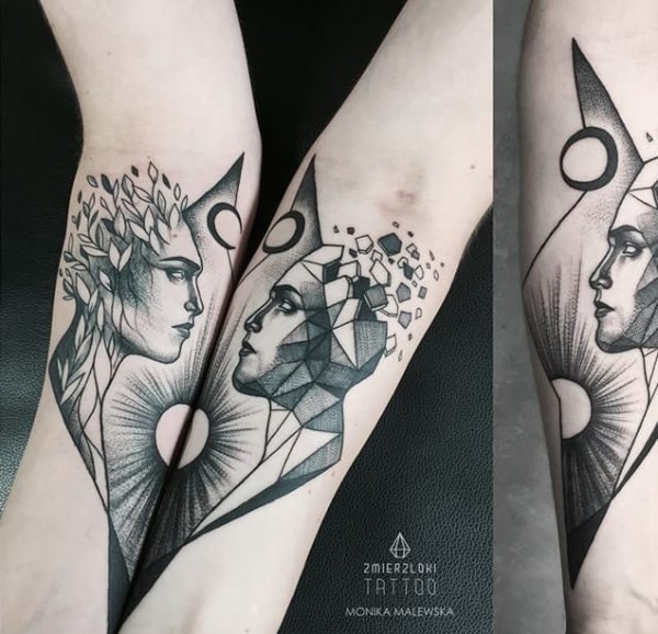 双子座纹身手稿_29张十二星座之双子座纹身图案手稿