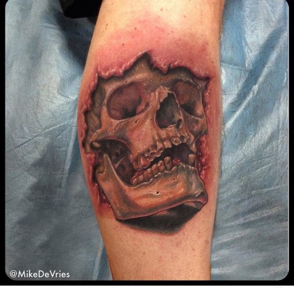 男性手臂上恐怖纹身骷髅头纹身立体小纹身3d图案