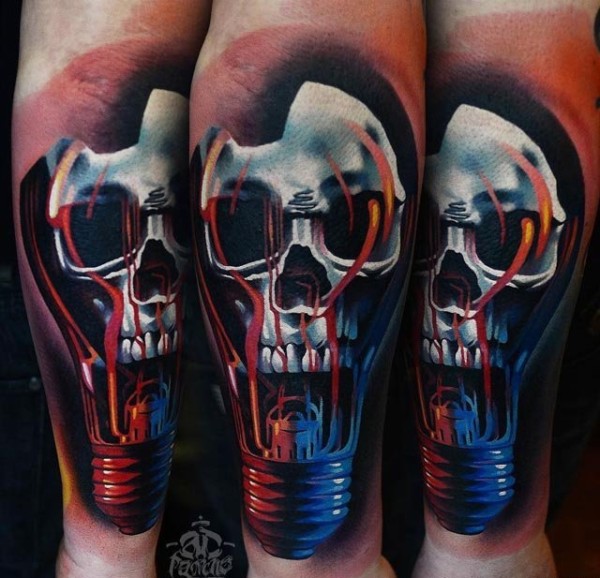 男性手臂上恐怖纹身骷髅头纹身立体小纹身3d图案