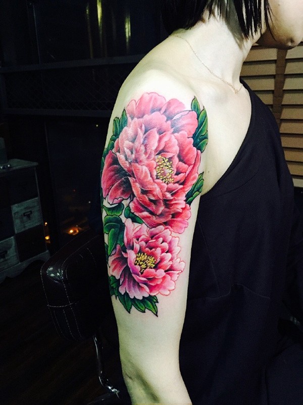后肩唯美花藤英文图案图片_植物纹身图案大全_纹身图吧