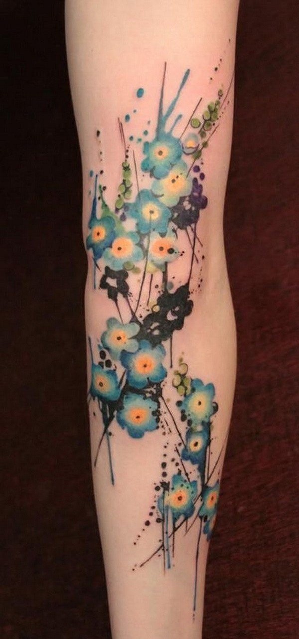 清新花朵腿部纹身图案图片_植物纹身图案大全_纹身图吧