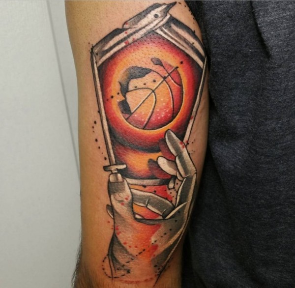 一组男生热爱的几何元素纹身简单线条关于篮球的纹身图案
